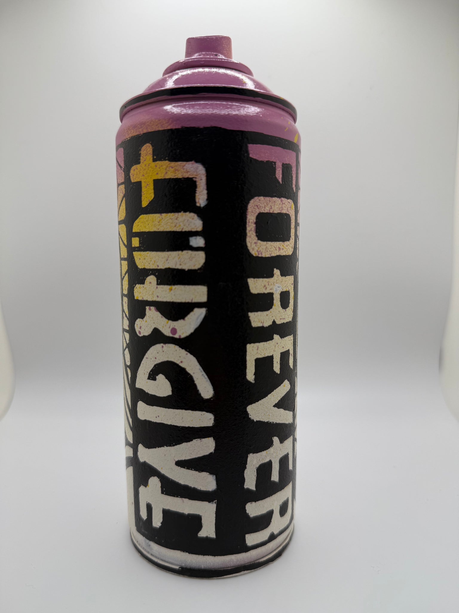 Used spray can individually painted by the artist.